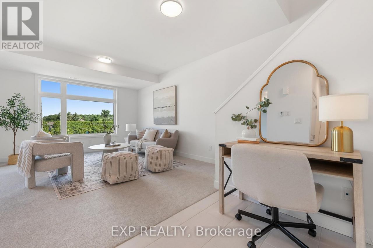 THIS HOME QUALIFIES FOR THE HST NEW HOUSING REBATE!! Welcome to 1005 Silhouette Private, a brand new upper unit condo that blends modern design, bright open spaces and everyday convenience in the heart of Barrhaven's growing community at The Junction. Thoughtfully designed with clean lines and oversized windows, this home offers a warm and inviting atmosphere from the moment you step inside. The main level features an expansive open concept layout filled with natural light. The living and dining areas flow effortlessly together, framed by a wall of windows and sliding doors that open onto your private balcony. A perfect spot for morning coffee or unwinding at the end of the day. The kitchen is stylish and functional with flat panel cabinetry, stainless steel appliances, a central island with seating and a well-planned layout that keeps everything within easy reach. A convenient powder room and a bonus study nook complete this level, adding flexibility for work, organization or a small tech space. Upstairs, two generously sized bedrooms offer comfort and privacy. The primary suite includes a walk-in closet and a three piece ensuite, while the second bedroom sits beside a full bathroom and linen storage. Laundry is also located on this level for added ease. With 2 bedrooms, 2.5 bathrooms, upgraded finishes and a bright airy feel throughout, this home is truly move in ready. Outside, enjoy a private balcony and the simplicity of an exterior parking spot. Located steps from everyday amenities, cafes, shops, green spaces and only minutes to transit, parks, schools and the new LRT extension, this is a community designed for convenience and connection. If you are looking for a stylish low maintenance home with a smart layout and modern finishes, 1005 Silhouette Private is a must see. Located just minutes from shopping and Costco, this home offers modern living with unparalleled convenience. (id:52350)