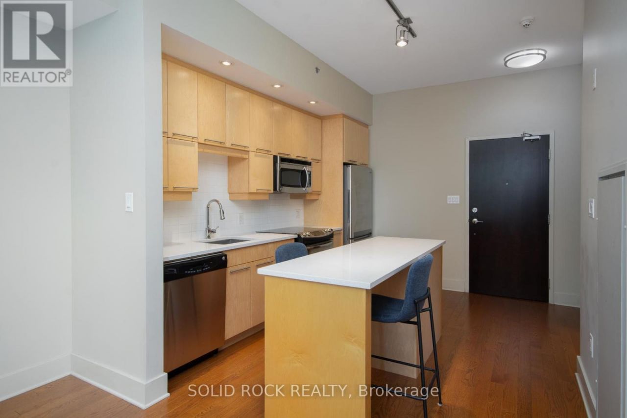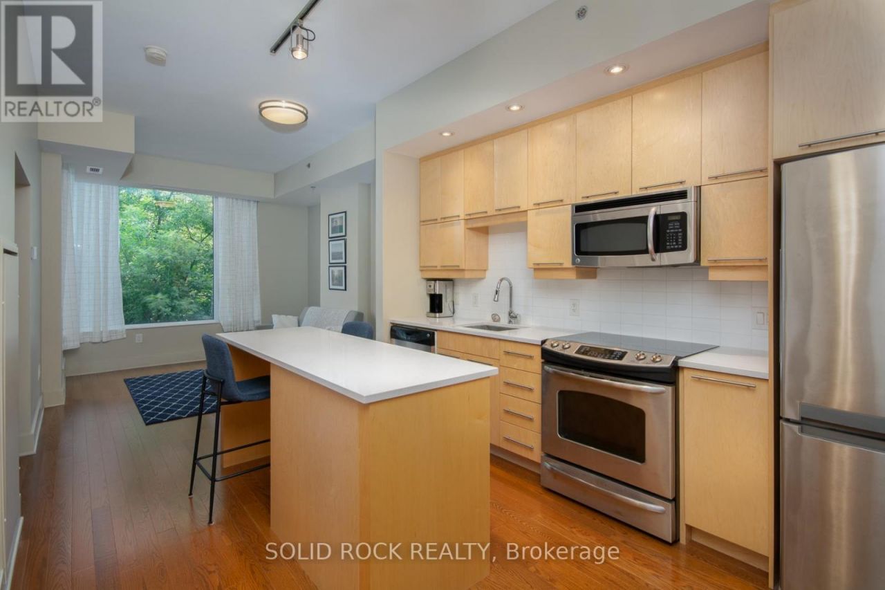 Elevated Living in the Heart of Westboro. Welcome to Unit 208, where modern design meets effortless comfort in one of Ottawa's most sought-after neighbourhoods. This sophisticated residence features an airy open-concept layout enhanced by impressive 9 foot ceilings and a private north-facing balcony-offering a peaceful retreat with soft natural light and added privacy. Inside, you'll find a refined blend of rich hardwood flooring, sleek porcelain tile, and elegant quartz surfaces that create a clean, contemporary feel. Thoughtfully selected designer fixtures and finishes elevate the space while maintaining everyday functionality. The seamless flow between the living and dining areas makes this home equally suited for entertaining guests or enjoying quiet evenings in. Residents enjoy exclusive access to one of Westboro's most stunning rooftop terraces, complete with sweeping city views-an exceptional setting for relaxing, hosting, or simply taking in the skyline. Ideally located steps from Westboro's vibrant shops, cafés, and amenities, Unit 208 offers a lifestyle defined by convenience, style, and quality craftsmanship.Discover the perfect blend of urban energy and refined comfort-schedule your private showing today. (id:52350)