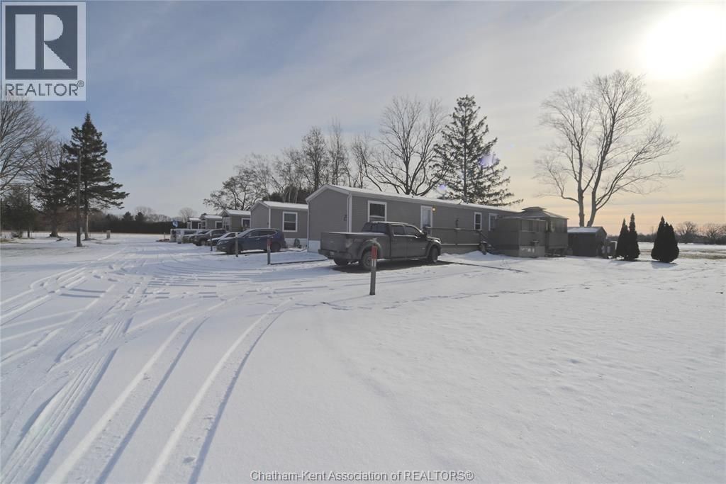 Why buy a money pit fixer upper when for the same price or less you can skip the stress and move right into the ultimate low maintenance mobile where everything is only 6 years old? Don't put yourself in the middle of a busy questionable park either, this spot has only a handful of units that are all new and well kept, so you have lovely neighbours in a very small community, designed for retirement age residents only (55+) and flanked by beautiful forest, complete with a walking trail. Affordable living that is modern, comfortable and with attractive country surroundings is hard to find, but this is it. This 2019 model is a spacious 60' x 14' 2 bedroom with a big living room window view, lots of kitchen with an open concept, a generous bathroom with more space and storage closets than your average mobile. Forced air propane furnace with central air, a deck that runs the length of the home and a private BBQ spot and enclosed gazebo. The 8' x 12' storage shed and gasoline generator is super handy and two parking spots are a plus. $525 monthly park fees include water, garbage and snow removal for the lane in. Daily amenities are nearby in Newbury, Glencoe, Bothwell or Thamesville so you can enjoy rural life with small town conveniences here. (id:52350)
