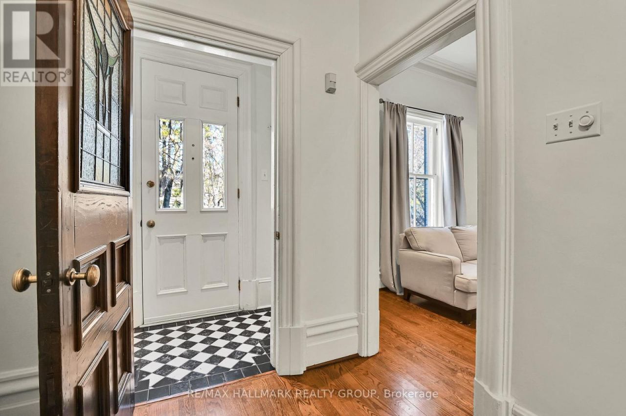 Timeless Heritage Brownstone in a Premier Location- Across from the Governor General's Residence & steps to Beechwood Village, Stanley Park, + the Rideau River, this full-brick 3-storey heritage brownstone blends historic charm with modern comfort in one of Ottawa's most coveted locations. Offering 4 bedrooms +2 full bathrooms across three levels, the main floor features an elegant, flexible layout. The focal fireplace can be highlighted in either the living or dining room, with easy conversion to gas if desired. The home also offers exceptional versatility, including the potential for a second-floor family room and a third-floor lounge with rooftop views. A bright white kitchen with a café-style eating area overlooks the private rear deck, creating a welcoming space for everyday living. The second level includes two generous rooms; one often used as a front-facing family room with views toward the Governor General's Residence. This floor also hosts two full bathrooms-one with a tiled shower, the other with a deep soaker tub-plus convenient second-floor laundry. The third level adds two additional bedrooms and a versatile lounge with a Juliet balcony, ideal for a home office, reading retreat, or relaxed sitting area. A full-height basement provides excellent storage and is notably dry, making it perfect for wine storage. Parking (1 vehicle) is accessed off of Keefer St. via a right of way (under the deck height restricted to standard car size). Thoughtful improvements over the years include a firewall in the attic, blown-in insulation in exterior and common walls and roof, repointed chimneys, updated roofing with snow and ice protection, upgraded electrical panel with copper wiring, new water service with copper plumbing, furnace, air conditioning, and modernized kitchen, bathrooms, and laundry. Timeless architectural details have been carefully preserved throughout, offering warmth, character, and enduring appeal in a truly remarkable heritage home. (id:52350)
