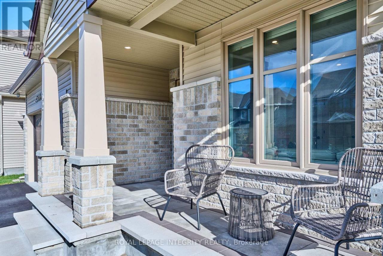 Experience upscale living in this 2021-built detached home located in the prestigious Findlay Creek community of Ottawa. Freshly painted in 2024 with stylish accent walls, this 4-bedroom, 4.5-bathroom home is fully upgraded and move-in ready. Situated on a premium lot beside the sidewalk with added distance from neighbours, it offers enhanced privacy and curb appeal. Interlock landscaping highlights both the front and backyard, complemented by a newly built fenced yard with two secure gates and a finished two-car garage. Inside, enjoy a carpet-free layout with hardwood floors on both levels, upgraded lighting, and high-end appliances. The chef's kitchen features abundant cabinetry, generous workspace, a large island, and premium finishes. The great room includes a gas fireplace, while a main-floor living room with French doors provides flexible use as an office or additional bedroom. Upstairs offers four spacious bedrooms, each with bathroom access, including a primary suite with spa-like ensuite, a second bedroom with private ensuite, and a Jack-and-Jill bath for bedrooms three and four, plus second-floor laundry. The finished basement adds a large rec room, office, full bath, and second fireplace. Owned tankless water heater included. Exceptional comfort, style, and location. Findlay Creek living at its finest. (id:52350)