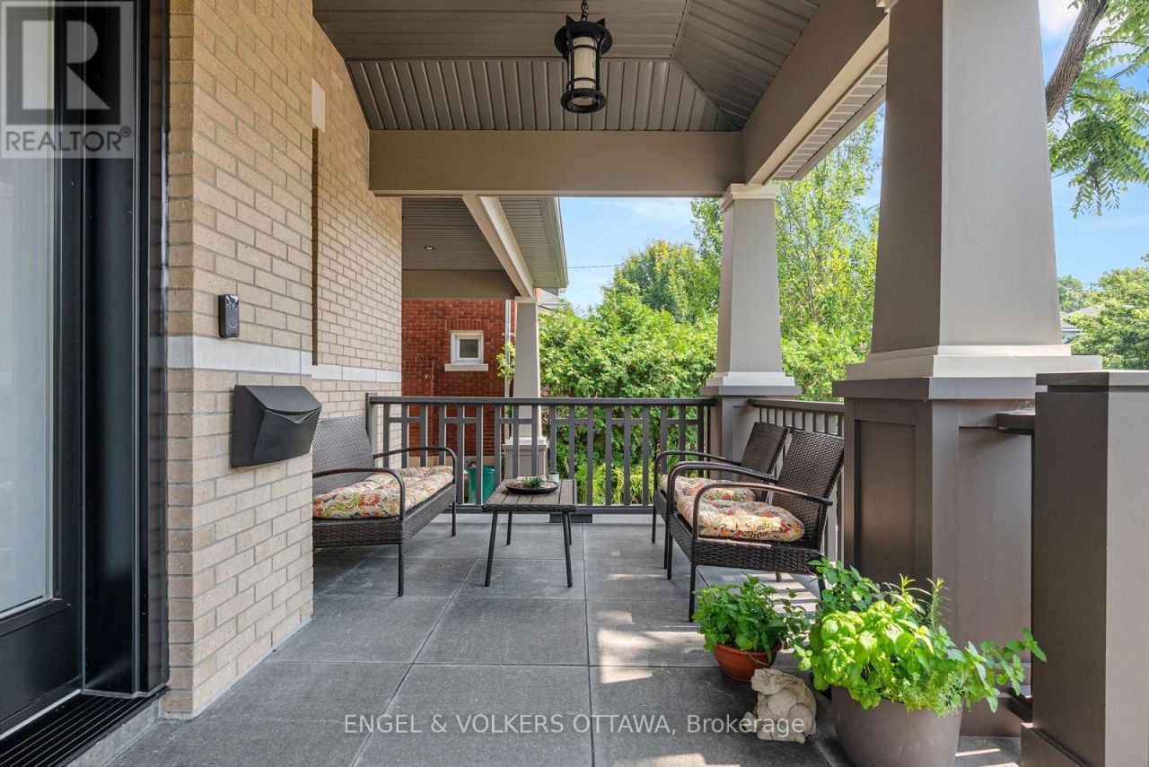 This high-quality, 3,500 sq. ft. custom home in the heart of Wellington Village is not only beautiful, the layout is functionally fabulous and features a rare double-height garage w/ reinforced floors, zoned HVAC and elevated ceiling heights. The entry is anchored by a dramatic 22 ft high foyer w/ custom walnut niche, walnut light fixtures, and heated porcelain floors that lead to an adjacent mudroom or the open-concept living & dining area featuring a floor-to-10-foot-ceiling-height fireplace clad in Dekton porcelain slabs & a custom staircase featuring walnut handrails and newel posts milled from a tree once on the property. At the heart of the home, a chef-inspired kitchen boasts a barrel-vaulted ceiling that extends thru to the connected family room, Dekton countertops & walls, 10 ft island, a beverage station & premium Fisher & Paykel appliances and an adjacent screened porch. Arriving at the second level, you're met w/ a 2nd barrel-vaulted ceiling, 9 ft high and four spacious bedrooms all with ensuite bathrooms & a nursery/office. The primary suite features his & hers walk-in closets & an ensuite w/ Dekton counters & shower surround, wood-accent shelving as with other bathrooms, & a free-standing tub. A well-appointed laundry room with a proper sink, quartz counters & ample storage. The lower level provides bonus living space w/ a sprawling recreation room w/ rough-in for a bar, a bedroom w/ an ensuite, a powder room, & heated flooring throughout. 8'-4 ceilings, w/ pot lighting & LVP wide-plank floors maintain the character of the home's upper levels. The remainder of flooring throughout the home is wide-plank, white oak engineered hardwood. The landscaped, fully fenced backyard includes an interlock patio, a cedar pergola-topped BBQ deck, defined garden beds & mature trees. Set on a tree-lined street in Wellington Village, this home is just steps from Elmdale Public School, Parkdale Market, and the shops, cafés, & restaurants of Wellington West & Westboro (id:52350)