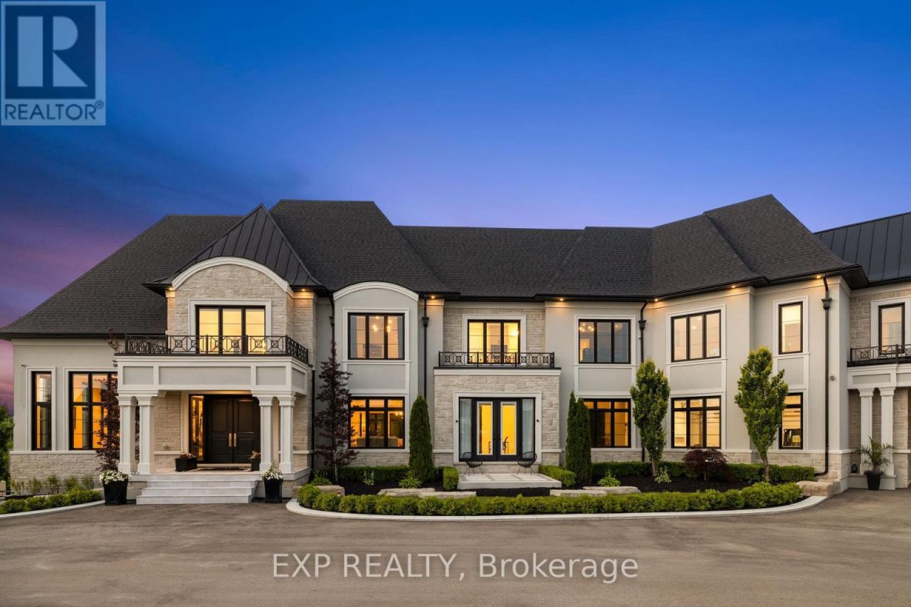 Welcome to the lap of luxury at this majestic King City gated estate, spanning on over 2.5 acres of picturesque land. With over 10,000 square feet of modern and tasteful finishes, this home exudes elegance with a grand entrance, crown molding, wainscoting and hardwood throughout. A chef's lavish kitchen complete with Dacor fridge and freezer, an 84-inch Wolf stove, and not one, but two walk-in pantries. Boasting 5 bedrooms, the primary bedroom includes a extravagant closet and an exquisite bathroom. Additionally, this property showcases a huge in-law suite for extended family or guests. Newly finished, light-filled walkout lower level. Featuring an expansive theatre room with a sleek wet bar perfect for entertaining in style. This impressive space also includes an additional bedroom, two elegant bathrooms, and a spacious recreation room. Step outside to the backyard oasis, offering unmatched privacy, a basketball court, open field, and a cozy firepit-perfect for outdoor gatherings and relaxation. Experience the ultimate in luxury living at this remarkable estate. (id:52350)