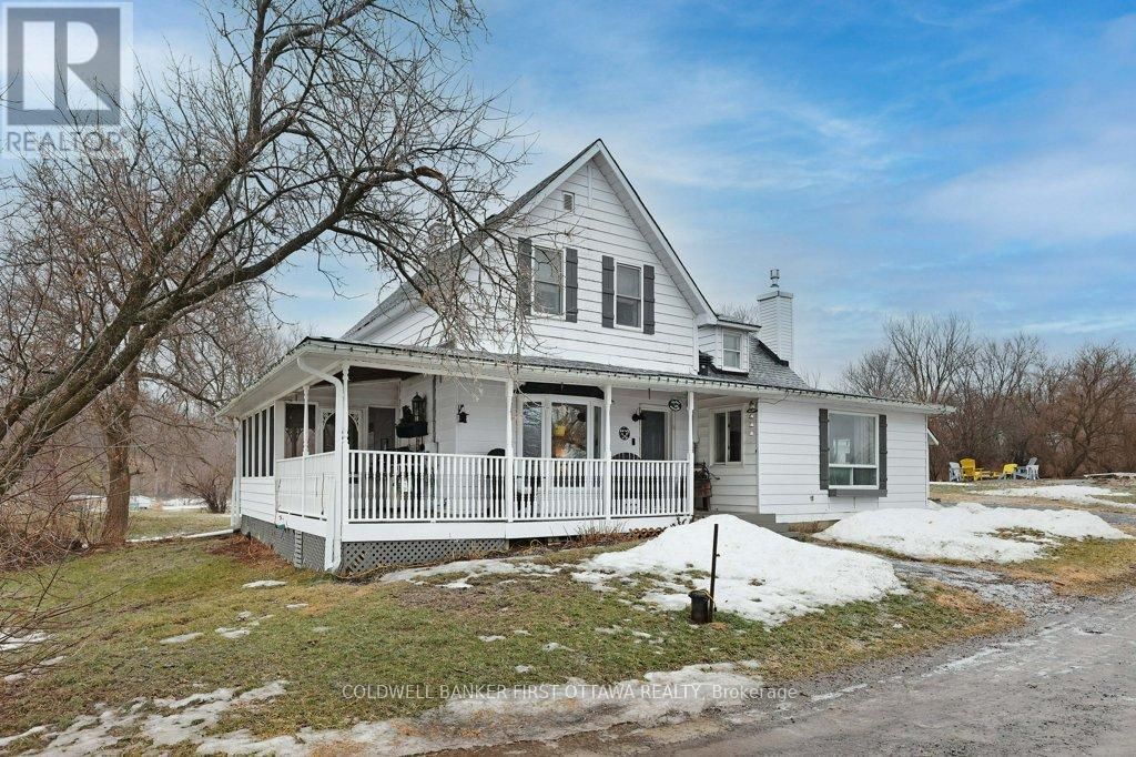 Step into timeless charm and character in this beautifully maintained century home, situated on 2 country acres, where stunning interior exposed logs create a warm and inviting atmosphere. A welcoming wrap-around porch sets the tone, perfect for relaxing and enjoying peaceful surroundings. Inside, you'll find wood flooring and a cozy woodstove that anchors the bright and spacious living room. The updated open-concept kitchen is designed for both everyday living and entertaining, featuring a breakfast bar and seamless flow into the dining area. A screened-in sunroom offers the ideal spot to enjoy your morning coffee while taking in the views. Convenience meets functionality with main floor laundry and a well-appointed layout. Upstairs, the large primary bedroom impresses with vaulted ceilings, while two additional generously sized bedrooms and a 3-piece bath complete the upper level. Outside, a detached 3-car garage provides ample space for vehicles, storage, or hobby use. This home perfectly blends historic charm with modern updates-an exceptional opportunity to own a truly special property. Recent Updates - Septic System - Tank/Bed (2010), Well drilled deeper (2007), New submersible pump (2025), New water pressure tank (2014), New hot water tank (2021), New Propane Furnace (2021), New Central Air Conditioner) (2021), New Roof (50 year shingles) (2019), New Garage Roof (2024), New Garage Doors (2023), New foam insulation in basement (2023 ). 24 hours irrevocable on all offers. (id:52350)