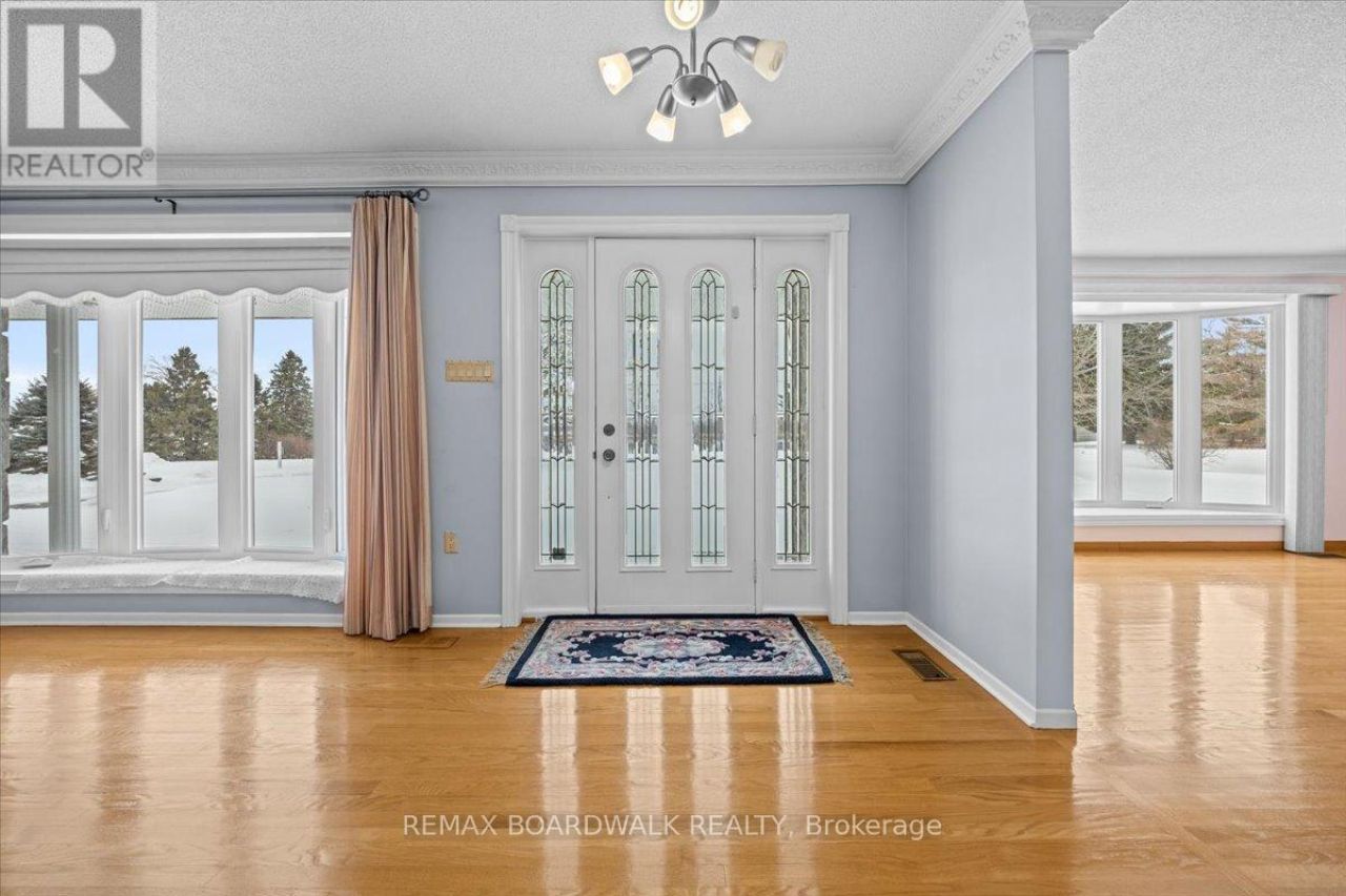 Custom-built all-brick walkout bungalow with in-law suite potential and detached 3-bay heated garage/workshop both with 200-amp service on approximately 52 acres. The main floor features bright, open living spaces with hardwood flooring, crown moulding and bay windows with loads of natural lighting. Eat-in kitchen features wall oven, quartz countertops, undermount sink, breakfast bar, and plenty of cupboard and cabinet space. Main level laundry room, wide hallways, deep closets, and a spacious 4 pc main bathroom. Bedroom wing features three generously sized bedrooms each complemented by serene rural views. Separate storage closet. The fully finished walkout basement offers two additional bedrooms, a full kitchen, eating area, large rec room, office, full bathroom, and a wet bar perfect for entertaining. Separate entrance and lower-level garage, this space is ideal for multigenerational living, guests, or income potential. Vehicle and hobby enthusiasts will appreciate the comprehensive garage setup. Heated upper garage with direct home access, carport with patio door access to kitchen. Detached 3-bay heated garage/workshop with separate 200-amp service, designed to accommodate vehicles, projects, or storage. Elevated deck, expansive outdoor space, and the tranquil rural setting extend the home's living experience, offering privacy, leisure, and room to enjoy. All this is just minutes from Boundary Rd. and the 417, with big box amenities only 15 minutes away. Appliances are considered to be in an as-is / where-is condition. Rogers Fiber available. 24 hour irrevocable on all offers. (id:52350)
