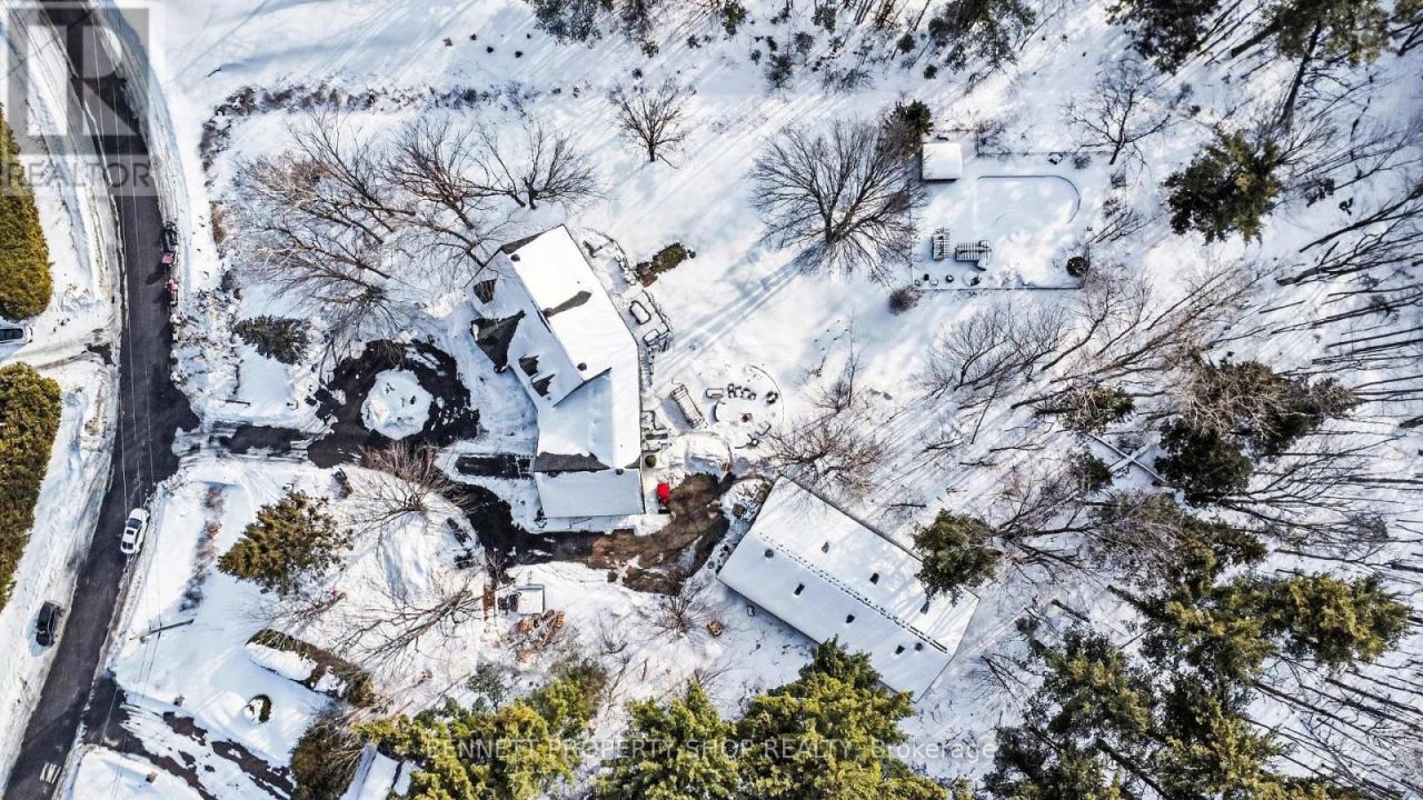 Exceptional estate-style home with 5,079 total sq ft and set on over 2 acres, offering space, privacy, and extensive modern upgrades. This thoughtfully designed residence features 5 bedrooms and 4.5 bathrooms, making it ideal for families seeking room to grow, or Multi-Generational living. Extensive upgrades completed between 2021-2022 include a forced-air furnace (2021), boiler system (2022), two air-conditioning units (2022), on-demand hot water system plus tank (both owned), HRV system (2021), natural gas fireplace (2022), roof (2022), all new PEX and copper plumbing (2021), and complete electrical replacement with a 200-amp panel (2021). The kitchen was fully redesigned with custom cabinetry and quartz countertops, while all bathrooms have been updated with new cabinetry, quartz counters, ceramic flooring, and modern fixtures. Hardwood flooring spans the main and second levels, complemented by ceramic tile in high-traffic areas. The finished basement offers heated LVT flooring, a stone feature wall, custom cabinetry, and walk-out access through new French doors. A rare and highly desirable feature is the oversized detached garage/outbuilding, approximately 40 ft x 80 ft, with heat and air conditioning, in addition to the heated double attached garage. This space is ideal for trades, hobbyists, collectors, or extensive storage needs. Outdoor amenities include a rear deck, fenced inground swimming pool, interlock landscaping, and multiple firepit areas, creating a private and inviting setting for entertaining and everyday enjoyment. Additional features include CAT6 wiring throughout, a whole-home Sonos system, Ring doorbells, exterior security cameras, EV charger rough-in, Gererac generator rough-in on the side of the attached garage, and Google Nest thermostats. A truly turnkey property offering exceptional functionality, and privacy, with major upgrades already completed. 72hrs' irrevocable. 24hrs notice for all showings. Some photos are digitally enhanced. (id:52350)