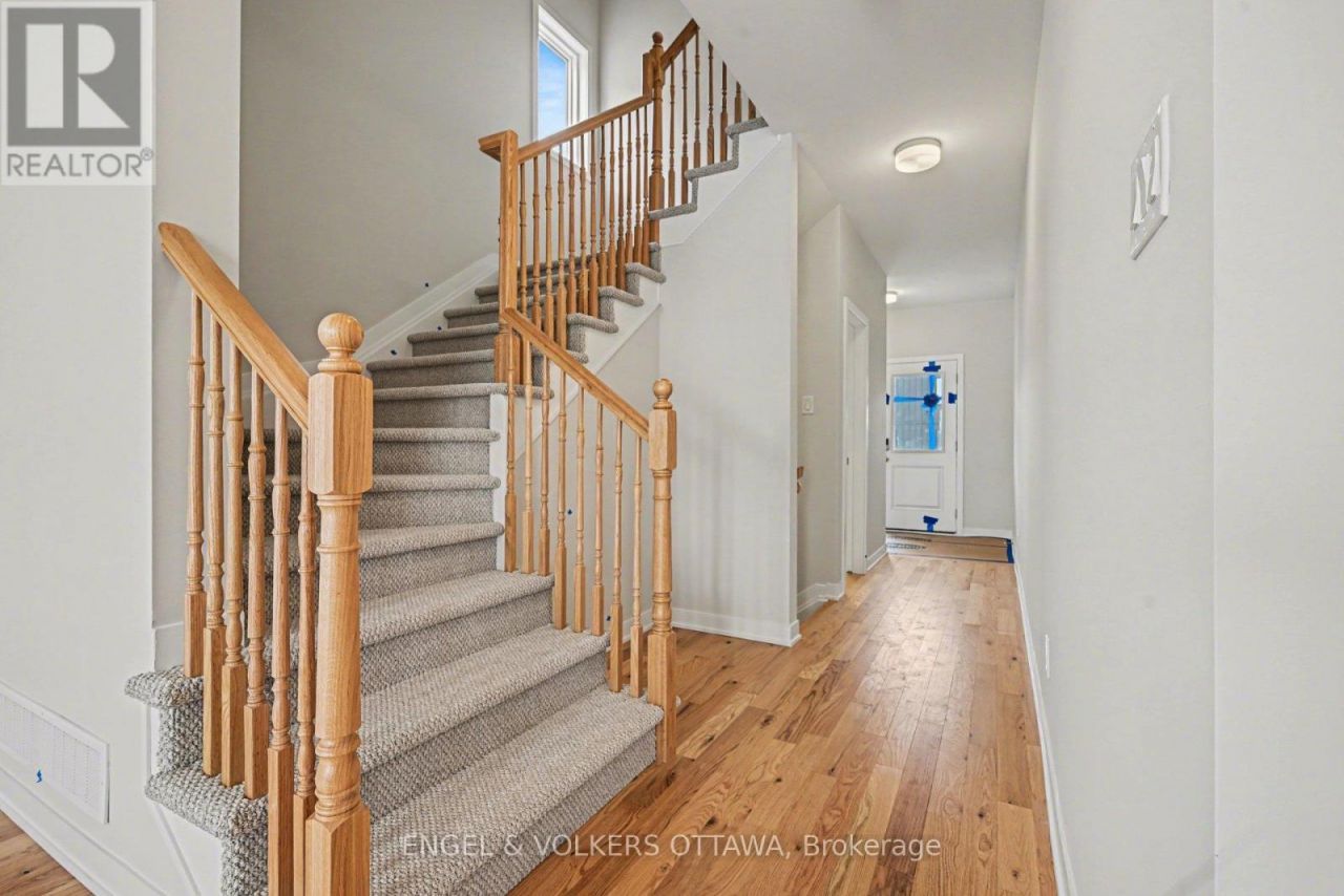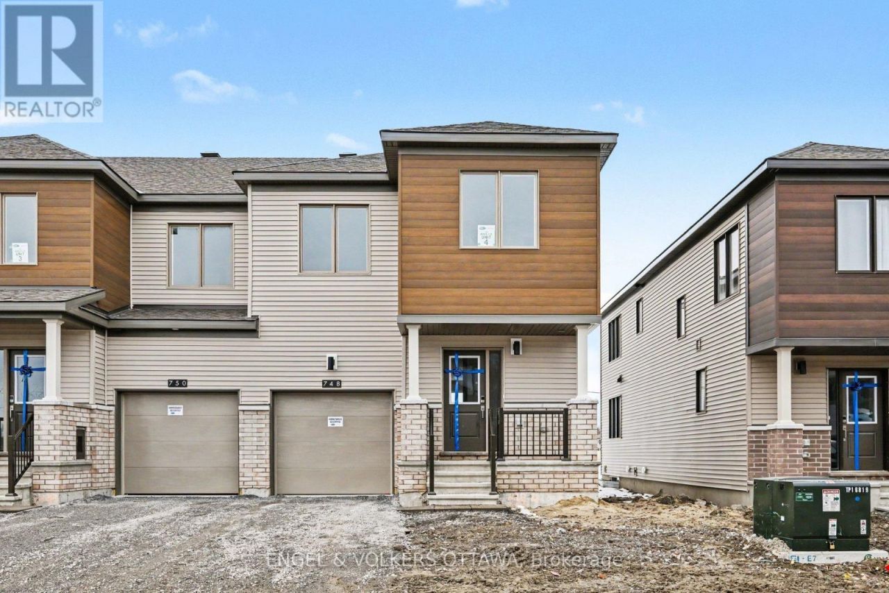 Welcome to 748 Tincture Place, a brand-new end-unit townhome with modern finishes across nearly 2,200 sq. ft. of living space in Kanata North. The main level features a welcoming foyer with tile flooring and convenient access to a powder room and garage. The layout opens into a spacious living and dining area, where wide-plank hardwood flooring leads to the central kitchen, which features full-height white cabinetry, dark stone countertops, a subway-tile backsplash, and a large island with a breakfast bar. Sliding doors off the kitchen provide direct access to the backyard, ideal when enjoying summer days. Upstairs, the second level has three comfortable bedrooms and a dedicated laundry area. The primary suite serves as a private retreat, complete with a walk-in closet and a 3-piece ensuite with a walk-in shower. Two additional bedrooms share a full bathroom, making this level ideal for families or those needing flexible space for guests or a home office. The finished basement adds valuable living space with a large recreation room that can easily accommodate a 4th bedroom, family room, gym, or workspace with direct access to a 4-piece bathroom, and multiple storage areas. This home is surrounded by top tech employers, excellent schools, parks, and everyday amenities, thanks to easy access to Highway 417, the Tanger Outlets, and the Canadian Tire Centre. (id:52350)